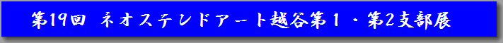 ご あ い さ つ 色とりどりの花が咲き、新緑の美しさに心が和む好季節となりました。 本日はお忙しい中、第19回越谷支部展にお越し戴きありがとうございます。 毎回、タイル画実演会場も早朝よりお並び頂いて好評です。楽しいふれあいの花が会場一杯に咲きますことを願っています。 さて今年、5年毎に表彰しています連続出品の回数が30回の方がおります。習い始めの頃はこんなにも続くとは夢にも思わなかった、あの頃は若かったし子供も小さかったわね!と感慨深く皆、口を揃えます。そしてこの会は20年以上のかたが25人、19年未満10年以上の方がなんと50人近くおります。それほどネオステンド・アートは手軽で美しく、光り輝く作品で、創造する喜びを感じます。『継続は力なり』と申しますが・・・人間弱音を吐くときも、体調が悪い時もあります。そんな時ご高覧のお客様始め、教室の仲間が励まして下さったおかげでなんとか乗り切れた気がします。お互い様、健康に気をつけこれからも善きお付合いをと、心よりお願い申し上げます。 ご後援、ご協力頂きました関係各位の皆様に御礼申し上げます。 平成25年5月吉日 ネオステンド・アート協会 越谷第一・第二支部