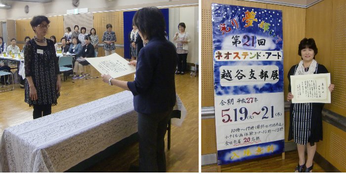 home >21回支部展top >表彰式&懇親会 表彰式&懇親会 展示会前日は表彰式、懇親会、準備と続きます。 ◆表彰式◆ ![]() 左側で立っているのが表彰される方たちです。表彰は連続出品で5年目・10年目・・・の方達です。 ![]() ◆懇親会◆ お茶で乾杯してから、会食、 じゃんけん大会と続きます。 ![]() じゃんけん大会 ![]() 勝った方達の賞品選びと賞品の準備をする講師たちです。用意してある賞品が全部なくなるとじゃんけん大会はおしまいです。