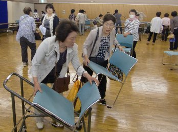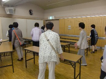 ◆講師紹介◆ 講師=支部展のブレインを紹介すると共に、展示準備の要領を説明します。 ![]() ◆いよいよ準備◆ まずは懇親会の片付けから始まり、テーブル・パネルを配置していきます。 ![]() ![]() テーマ毎に作品をわけています。あとで全体のバランスを考えて、多少の移動があります。 テーマの場所を示す掲示。パネルや壁に貼って、わかりやすくしています。勿論、あとで取り外します。![]() |