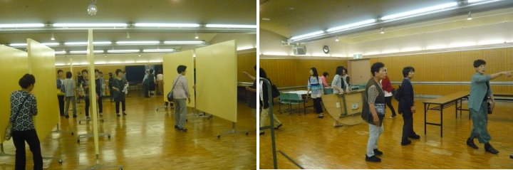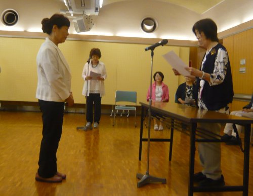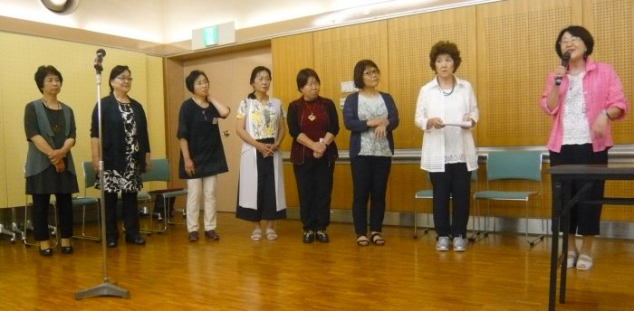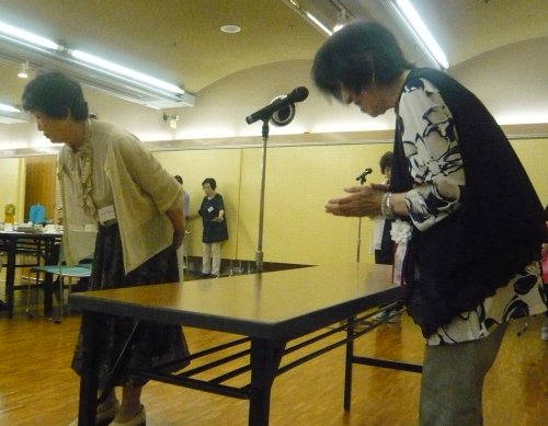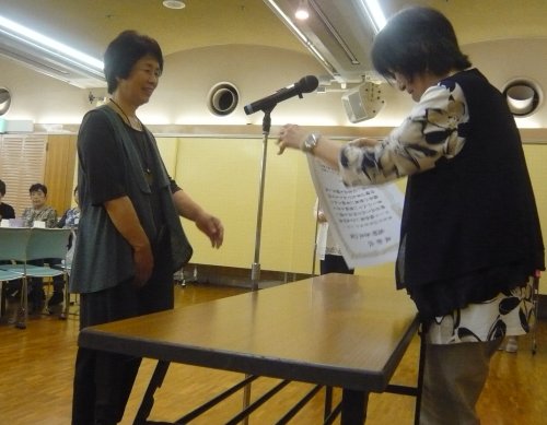 ◆講師紹介&準備手順の説明◆ 今回は食事後「片付けて」と言ったのかしら?『講師紹介』前にテーブルの上を片付けて椅子も重ねてしまう一幕も。「講師紹介は無いんですか?」と確認しました。ホームページの構成が変わるので、私はすぐ気づきましたね。 ![]() ◆準備◆ ![]() 会員数の減少に伴い、作品数も減っていると思われるので、展示も配置換えです。新体制の初年度は人一倍大変ですね。
