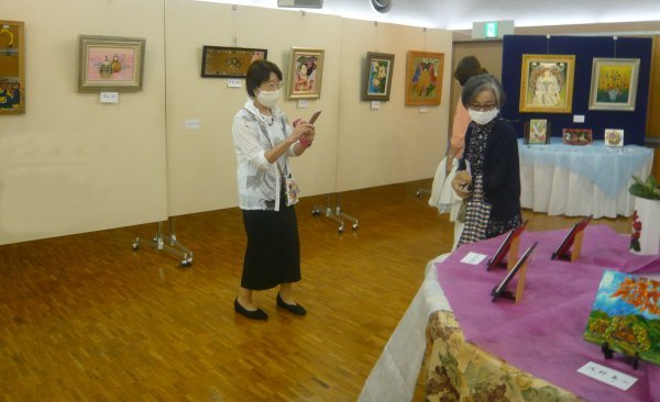 home > 26回支部展top >会場風景 会場風景 ![]() ![]() 受付にも壁面にも「マスクの着用、ソーシャルディスタンス」の掲示。主催者側になると、こういうことも一手間かかりますね。 ![]() お気に入りの絵、または自分の絵をパチリ。 後姿を隠し撮りしようとしたら、なんと前支部長のお二人でした。昨年は支部展が中止だったので2年振りです。お元気なお顏を拝見してとても嬉しかったです。 ![]() ![]() 例年はパネルの脚元を観葉植物ポトスの鉢で飾ってあったのだけど、今年は省略です。壁面の絵も従来はジャンルごとに分けて配置していたのですが、サークル毎の配置に変えてあります。 ![]() | ||||||||||