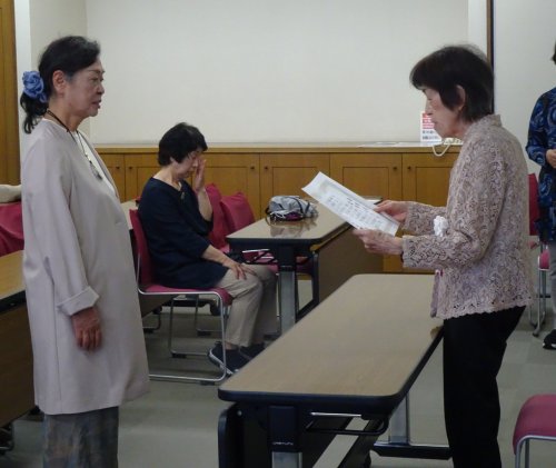 5年毎連続出品者の表彰です。最多年数は40回、表彰者全員で6名です。賞品は例年通り樹脂液です。(写真は3秒ごとに切り変わります。) |
